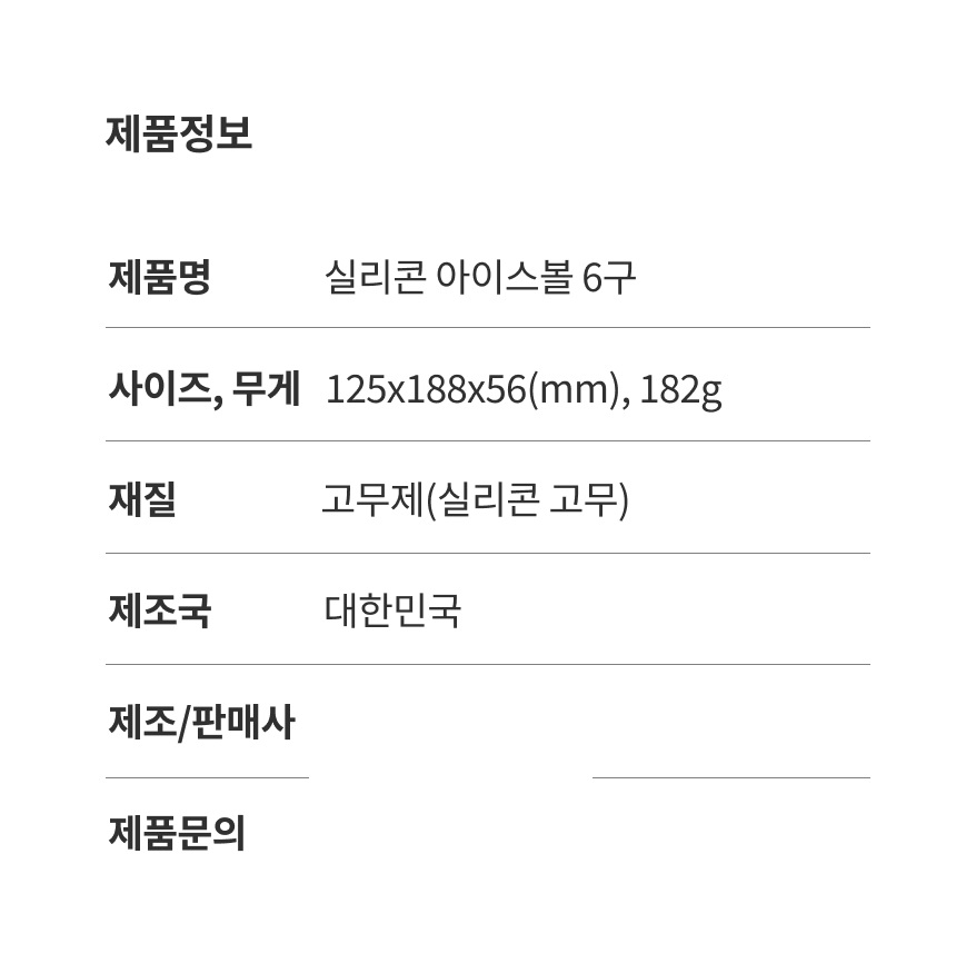 ±¸¼º ¾ÆÀ̽ºº¼ 6±¸ 1ea Á¦Ç°±Ô°Ý 125*188*56