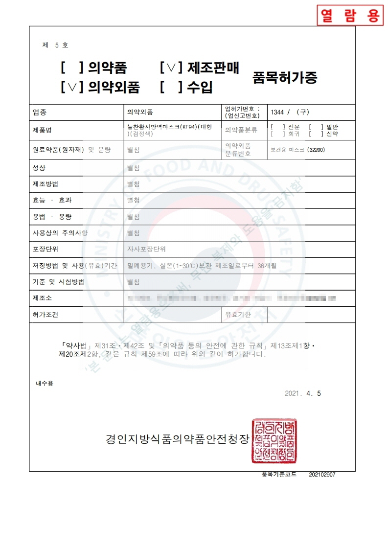 ´ÃÂù Ȳ»ç ¹æ¿ª¸¶½ºÅ© KF94 ´ëÇü °ËÁ¤»ö
