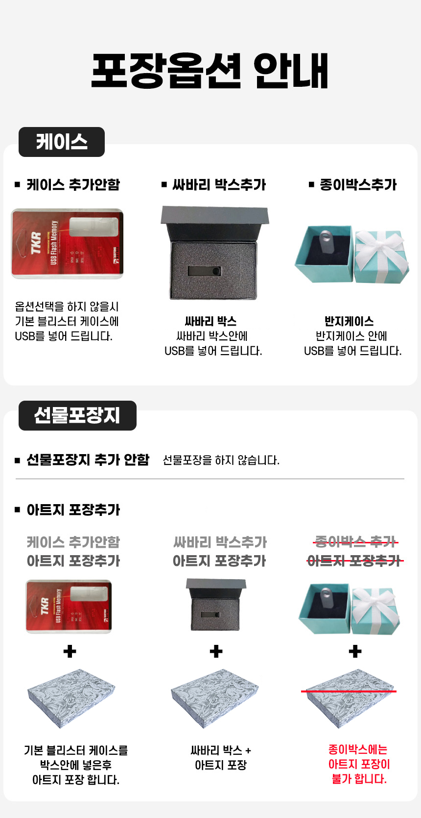 - ÆÐŰÁö, ¼±¹° »óÀÚ µî ¿É¼ÇÀ» Ãß°¡ÇÏ¿© ¹è¼Û ÈÄ ¹ÝǰµÈ »óǰÀÇ ¼±¹°»óÀÚ°¡ ÈѼյǾú°Å³ª µ¿ºÀÇÏÁö ¾ÊÀº °æ¿ì, ÇØ´ç ºñ¿ë °øÁ¦ ÈÄ È¯±ÞµÉ ¼ö ÀÖ½À´Ï´Ù.